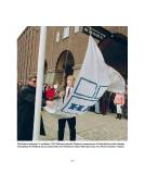 toimitusjohtaja Eero Makkonen (vas.) ja luottamusmies Jarmo Martikainen laskivat Hakan lipun salosta. Kuva Martti Kainulainen, Lehtikuva.
