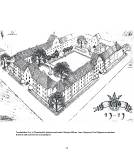 Perspektiivikuva Kone- ja Siltaosakeyhtiön työväenasuntokorttelista Helsingin Vallilasta. Armas Lindgrenin ja Bertel Liljeqvistin suunnittelema kortteli oli esillä ensimmäisessä asuntonäyttelyssä. 34